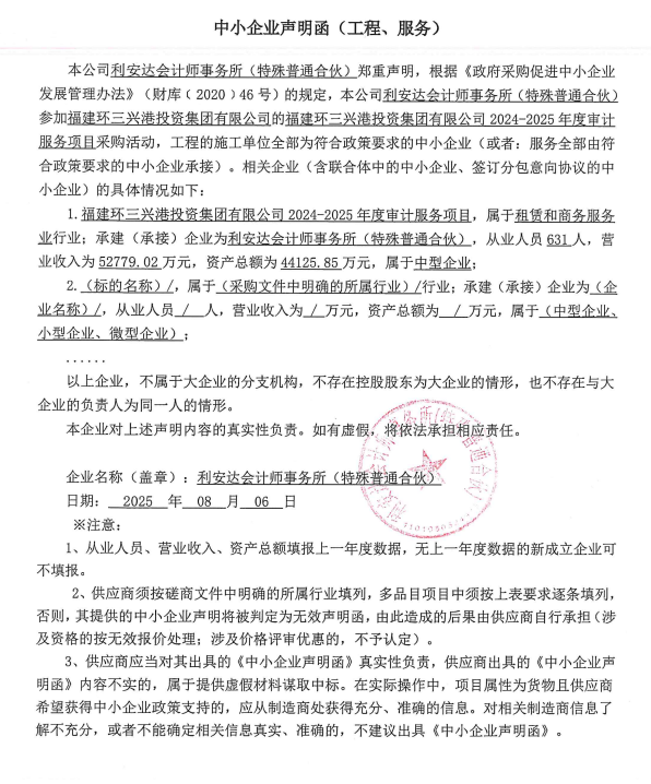 福建環(huán)三興港投資集團(tuán)有限公司2024-2025年度審計(jì)服務(wù)項(xiàng)目 |