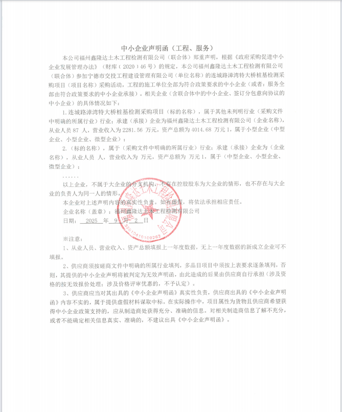 服務(wù)類(福州鑫隆達土木工程檢測有限公司)